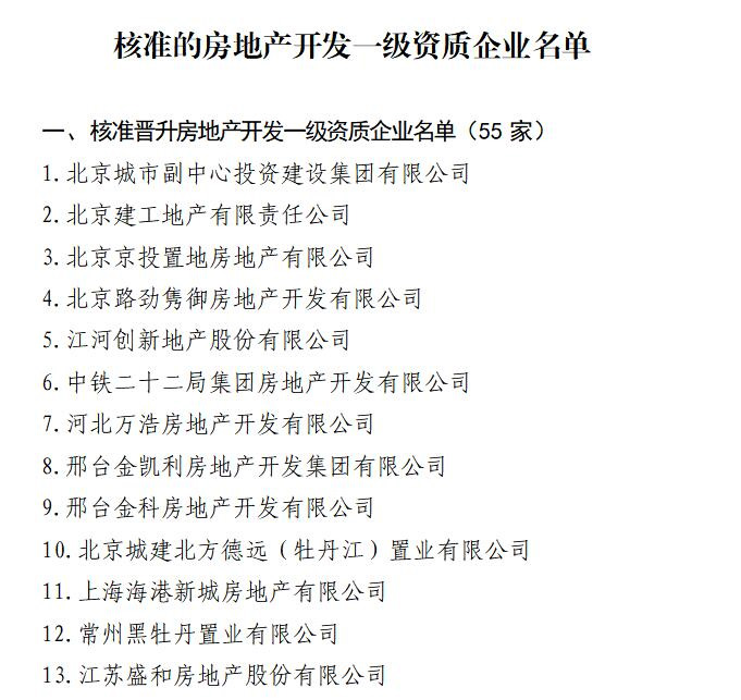 房地產開發(fā)資質分為兩個級別,國家一級資質是最高級別,對企業(yè)的整體規(guī)模、開發(fā)業(yè)績、施工質量、人員配備、從業(yè)年限等均有要求,獲批難度較大。本次全省僅3家企業(yè)核準晉升房地產開發(fā)一級資質。