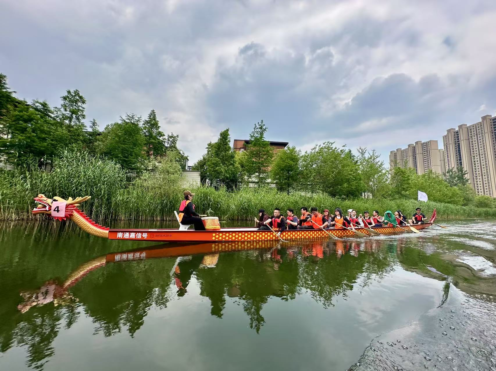除傳統(tǒng)破冰及團(tuán)建游戲外,員工們對本次拓展的重頭戲——龍舟競技尤為感興趣,個(gè)個(gè)都摩拳擦掌、躍躍欲試。隨著裁判一聲令下,龍舟如離弦之箭,在水面上飛馳。船頭的鼓手奮力擊鼓,節(jié)奏鏗鏘有力,鼓舞著隊(duì)員們的士氣;劃槳的隊(duì)員們整齊劃一,喊著響亮的口號,伴隨著鼓點(diǎn)奮力劃動船槳,濺起朵朵水花。一時(shí)間,水面上鼓聲、吶喊聲、助威聲此起彼伏,熱鬧非凡。